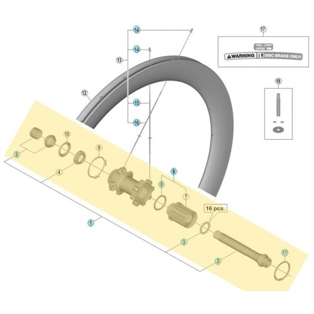 Axe complet de moyeu arrière Shimano Dura-Ace WH-R9170-C60-TU-R12